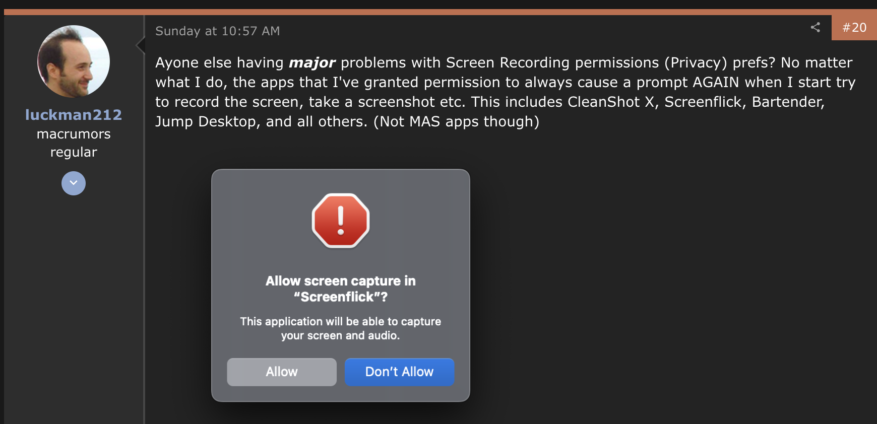 14.3에서도 정상적으로 문제없이 돌아가던 권한 체크 방식이 macOS 14.4 beta 2에서 갑자기 말썽이라는 것이다.