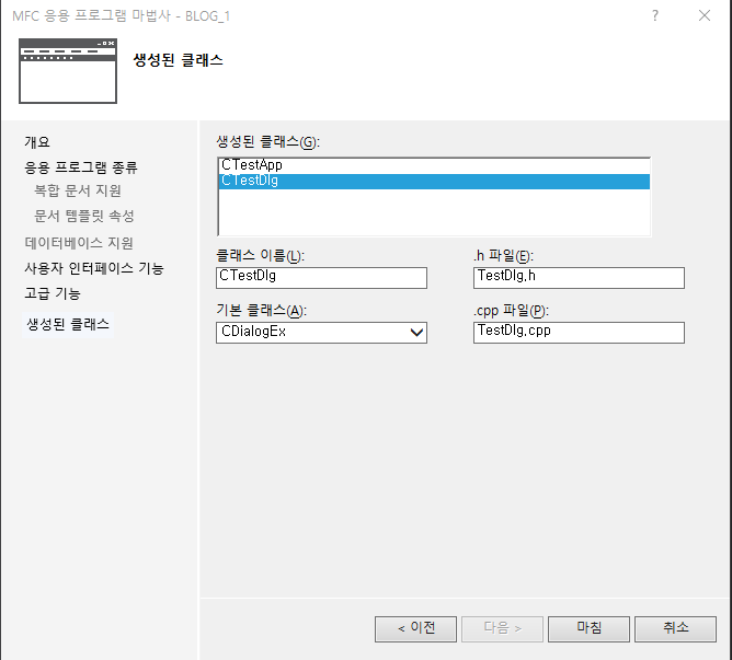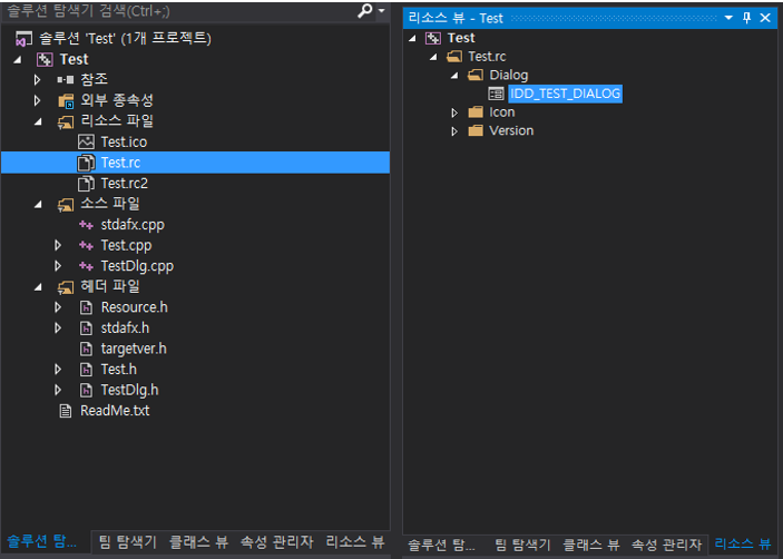 TestDlg.h 와 TestDlg.cpp 파일에서 생성된 변수 및 함수를 모두 수동으로 지워주셔야 합니다.