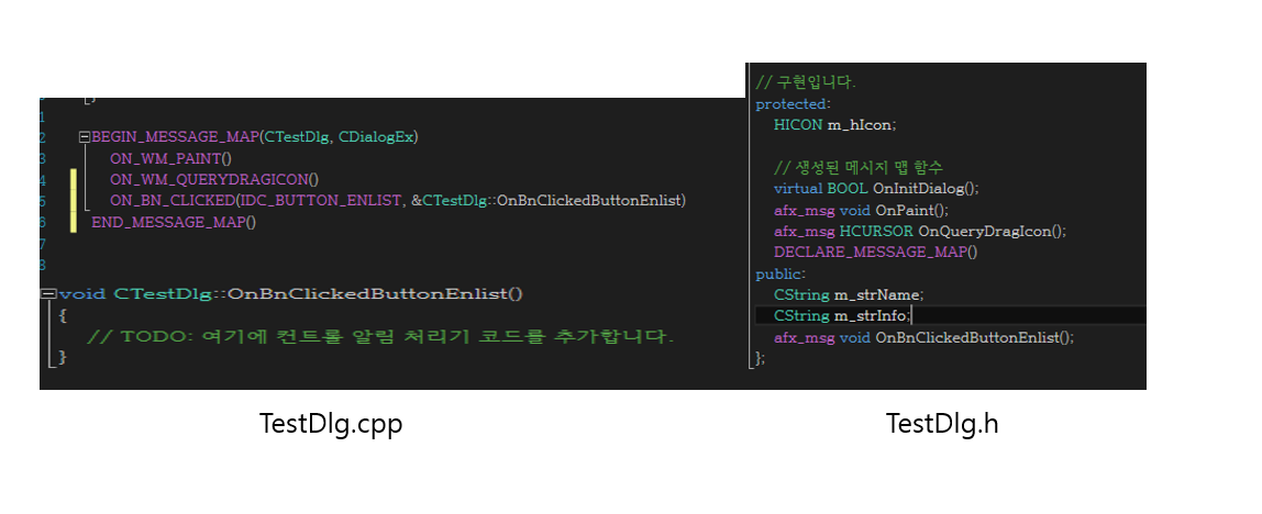 OnBnClickedButtonEnlist() 함수에도 마찬가지로 주석이 달린 부분을 추가해 줍니다.