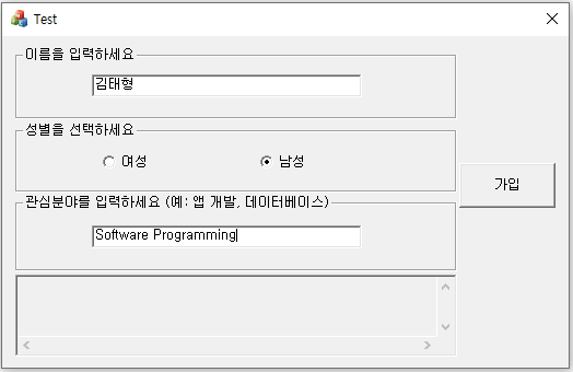 | Group Box | IDC_STATIC | Caption : 성별을 선택하세요 |