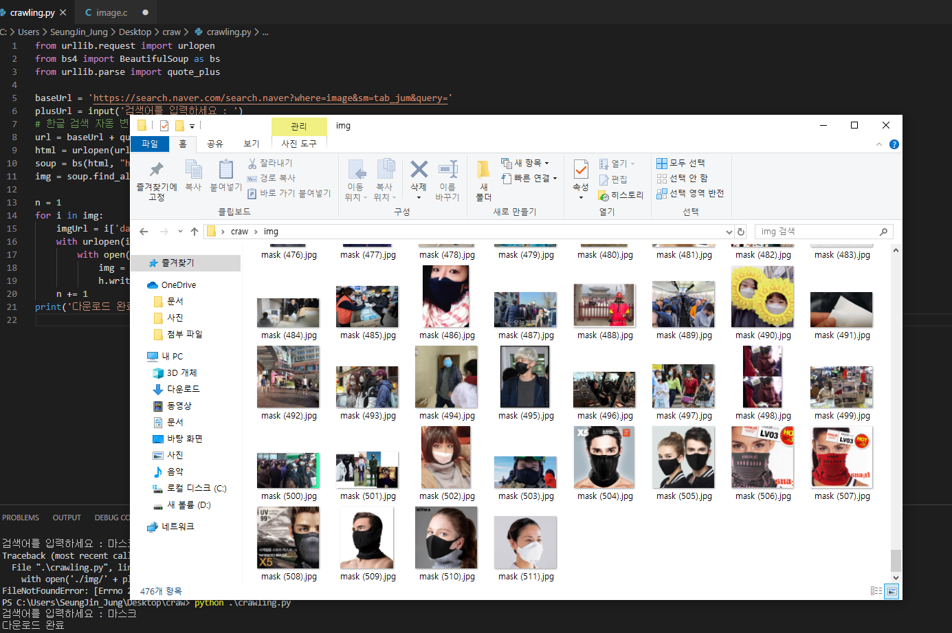 간단한 파이썬 코드로 네이버 이미지를 빠른시간에 많이 저장할 수 있습니다.